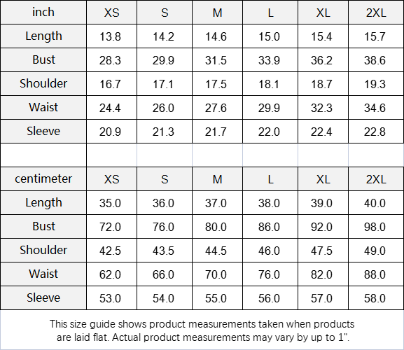 This size guide shows product measurements taken when products are laid flat. Actual product measurements may vary by up to 3cm.